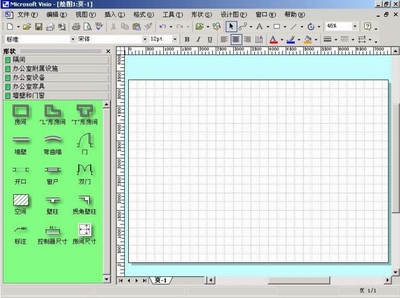 1.打开Visio后,在文件菜单上,依次指向“新建→建筑设计图→家居规划”,将弹出图1所示的界面,这是Visio提供的家居规划模板,在工作区的右边是按横向打开有比例的绘图页,在工作区的左边是它提供的与装饰非常有用的“形状”,用户可以利用这些“形状”进行室内建筑平面设计、添加墙壁及门窗、安排家具等。