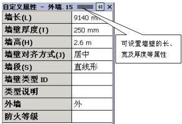 要打开自定义属性窗口,用户可选中图形,然后选择“视图→自定义属性窗口”菜单即可,图3所示即为墙壁的自定义属性窗口。