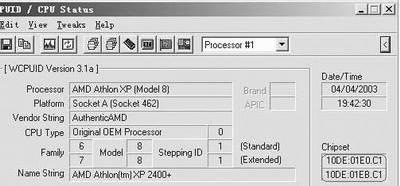 答:首先明确一下C1制程的nForce2芯片组出厂时间:MCP芯片在2003年第5周之后开始采用C1制程(编号为0305),SPP芯片在2003年第7周之后开始采用C1制程(编号为0307)。主板PCB板上都会有一个生产日期,在此日期之前的,基本可以肯定使用的是旧版。购买的时候可以参考《电脑报》15期C13、C14版的“硬件数据库”中的《强者的足迹》一文,里面对nForce2系列芯片组及主板有比较详细介绍。一般而言我们都是通过外观来辨别C1制程的nForce2芯片,因为这样比较准确。但是通过软件的方法我们一样可以达到识别的目的(虽然这样的方法有时可能会出现误差)。我们可以通过“wcpuid软件”3.10a版来识别,下载地址:http://www.onlinedown.net/wcpuid.htm,使用见附图。