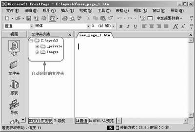 在这个新站点中,系统自动创建了两个文件夹:_private和images,分别存放站点中的私有资源和图片。在站点中还有一些隐藏属性的文件夹,这些文件夹都是储存一些站点相关资料的,不可以将它们的删除。为了以后目录清楚,我们还可以在站点中自行创建文件夹,例如我们可以将以后创建的所有的网页文件放在“homepages”文件夹中,动画文件放在“flash”文件夹中,这样可以给站点的管理工作带来方便。站点建立之后,我们应该及时地将它保存,方法是,单击工具栏中的“保存”按钮即可。
