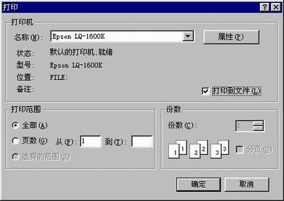 再将这个1.prn文件拷贝到公司的电脑硬盘中的C区根目录下,然后在Windows中的DOS方式下输入“copy C:\1.prn prn/b”,这时打印机会自动工作起来,打印出来的文档效果和我在笔记本电脑上设置的也是一样的,这样我就实现了在不安装WPS2000的情况下打印文件的目的。这种方法的原理也很简单,原来使用“打印到文件”功能以后,打印机会针对文件的具体情况,将它处理成打印机可以直接打印的文件,文件所需要的调用的字库全部会被加入到prn文件中,而由于公司里也是使用的同样的打印机,利用“copy C:\1.prn prn/b”命令,即使在不安装处理软件的基础上也可以直接打印了。