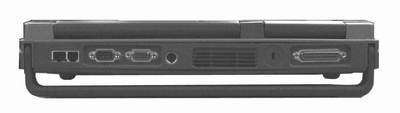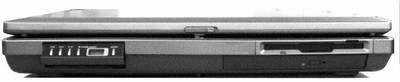 机身右侧,也有很多接口,分别是1394口、SD、MS、MMC、SM数码存储卡插槽。在数码插槽下面则是两个PCMICAⅡ扩展口,再接下来是PS/2口、以及四个USB2.0接口。加上机身背面的串口、并口、VGA口、S-vedio、网卡口、Modem口,真可谓集“接口”之大全了。无论是笔记本电脑接口、台式机接口还是数码多媒体接口全都有了。该机器的扩展能力非常强(图4)。