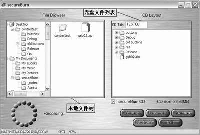 1.SecureBurn可以在http://www.secureburn.com网站下载得到。运行程序后将看见图1所示的主窗口,其中左边是本地文件目录列表。