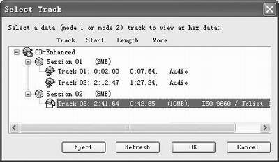 6.刻录完成之后,我们就得到了一张加密光盘,这时候可以通过Nero中的“Record→View Track”命令查看一下这张光盘(图7)。这里可以看见同一个音频文件两次刻录之后有很大的差别,这也就是为什么需要分两次来刻录的原因所在了。