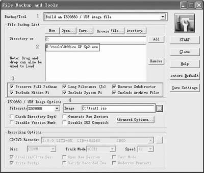 (1)首先从http://download.pchome.net/php/download2.php?sid=11818&url=/utility/cdr/cdr39cD0215-e.exe&svr=3下载CDRWin,运行程序之后先点击“File Backup and Tools”按钮,并且在图9所示的窗口中进行相关设置。