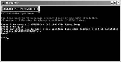 先运行FreeLock软盘上的genlock.exe程序,接着根据提示按下“C”键,FreeLock会在C盘上建立一个FreeLock.DAT的文件(图13)。