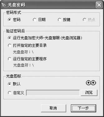 给光盘添加密码口令是最简单的一种加密方法,这种光盘在查看的时候必须输入正确的密码,否则无法浏览和使用光盘中的任何文件。由于这种加密方式操作简单,但是具有相对较强的安全性,因此非常适合新手玩家使用。