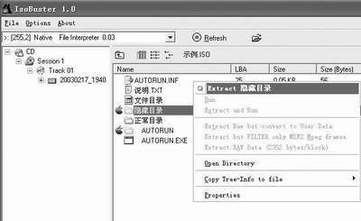 不过ISOBuster最强大的功能在于提取隐藏目录中的资源,如果遇到采用CD-Protector或者是FreeLock方式更改源文件制作的光盘就无能为力了,对于这种特殊加密处理的光盘还需要通过其他方法进行解密操作。