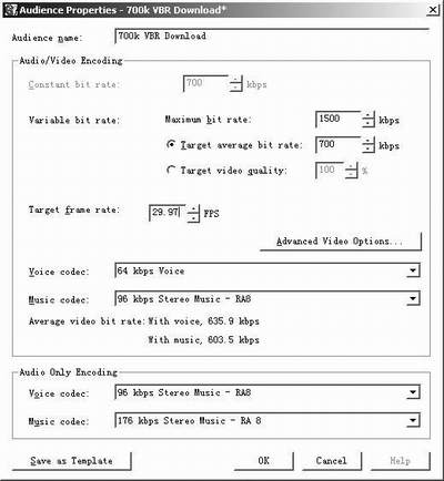 保存DVDrip可选择“700k VBR Download”,然后在稍后的具体设置中把平均码率设置为670Kbps左右,基本上可以用1CD的容量装下一张DVD。