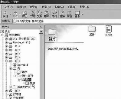 在图2鼠标光标指向的那个文件夹中,如果“复件”文件夹内的文件个数太多,这个新的“复件 复件”文件夹下面的文件夹的层数也会更多。有兴趣的读者可以试一试。在Windows XP中没有这种情况。线索提供者:林成荫