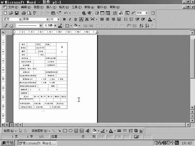 3.插入图片。用鼠标将光标定位于Word文档编辑区的左上角,选择“插入→图片→来自文件”,选中扫描得到的图片文件,选“插入”,Word文档编辑区即可显示申报表的其中一页表格的图片,如图1。