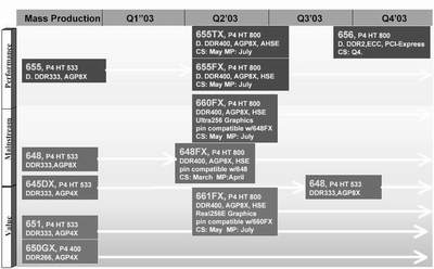 目前英特尔i875/865芯片组已经做好准备,而VIA和SiS面临着严峻的考验,因为如果有一款芯片组在进度表上落后了,要和比它发展早的对手竞争是异常困难的。从英特尔今年的桌面芯片组蓝图上看,和去年没有任何变化,除了i865/875系列(有关i865/875的详细介绍请参阅本报第15期C1版)之外,英特尔的下一代桌面产品,支持双通道DDR-2内存和PCI Express的Grantsdale系列芯片组要等到2004年第二季度才会发布了。看来英特尔认为凭借i865/875的强大性能在2003年是难逢对手的。现在市场上已经可以买到各大厂商的i865/875系列主板了,初期产品价格虽高但并不出格,预计暑期以后i865/875应该会顺利取代i845成为英特尔平台的主流产品。