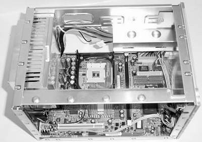 由于准系统的体积很小,但所采用的CPU并非移动处理器,因此发热量是一个不可低估的问题。更重要的是,对于准系统而言,CPU已经不仅仅而是唯一的热源,高转速硬盘、光盘驱动器、北桥芯片,这些都是火药包。如果没有合理有效的散热措施,那么准系统的稳定性将得不到保障,许多不明原因的死机,都是因为散热问题没有得到很好的解决而造成。因此,对于准系统而言,空间设计的合理性非常重要,这关系到一个产品的成败。