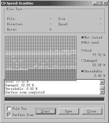 普通用户一般可以用Nero CD Speed的ScanDisc来对自己刻录的CD-R盘片进行测试。