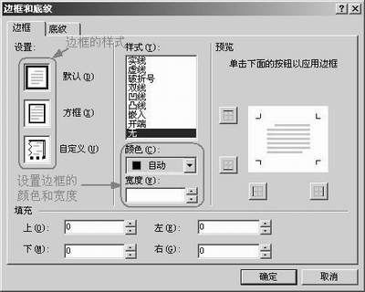 要想给某一段文字添加边框,先选中该段落,然后单击“格式”菜单中的“边框和底纹”命令,打开“边框和底纹”对话框(如图6所示)。