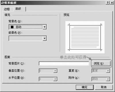 先选定要添加底纹或图片的段落,按上面介绍的方法打开图6所示的“边框和底纹”窗口,不过此时要选择“底纹”标签了(如图7所示)。
