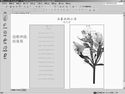 不知大家有没有发现在页面中有很多地方的格式不是很规范,比如诗名应该居中显示,作者姓名也应该居中显示。也许你会讲,这不是小菜一碟嘛!在Word中我用得很熟呢!先选中再按下格式工具栏中的居中按钮即可。呵呵,的确如此,其实FP与Word的操作差不多,先选中图3中的诗句,然后单击“居中”按钮,现在再来看看效果(如图5所示)。