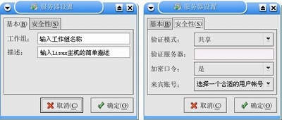 A.验证模式:如果Windows主机不是位于NT域里,此处应该选择“共享”验证模式,这样只有在连接Samba服务器上的指定共享时才要求输入用户名、密码;