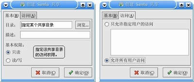 1) 在该对话框上的“基本”标签页上,指定要共享的目录为某个存在的目录,例如可以指定/tmp,再指定该目录的基本权限是只读还是读/写。
