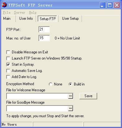 首先从http://bingle.pku.edu.cn/ftpsrv.zip处下载到最新的TYPSoft FTPServer软件,大小仅473KB。下载完毕后,用WinZip进行解压缩。