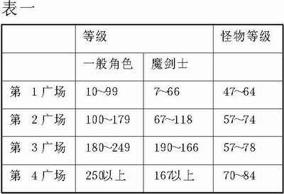 1.恶魔广场共分为有4个不同等级限制的广场,所有角色只能进入与其等级相称的广场(见表一)。