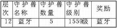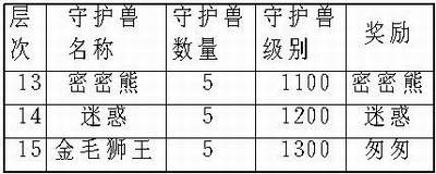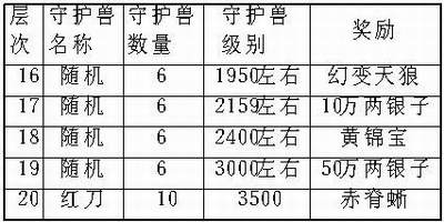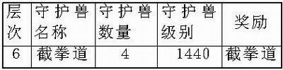 这一关的守护兽,是4只1440级的截拳道,攻击比较高。如果出妖MM的话,会被天敌克,如果4只一起攻击很可能会被一下秒掉。所以建议出1200级的鸟龙类宠物,这样可以克掉截拳道的攻击。当然,如果没有的话,可以靠招数来打,6000的防御足够克制截拳道的攻击了。这一层的奖励很一般,建议不要拿,直接进下一关好了。