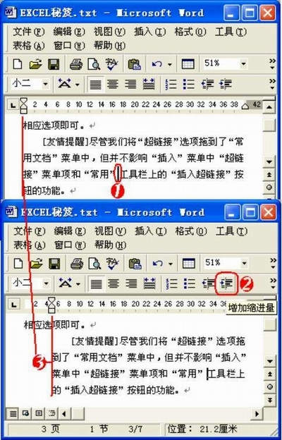 ②反复单击“增加缩进量”按钮。