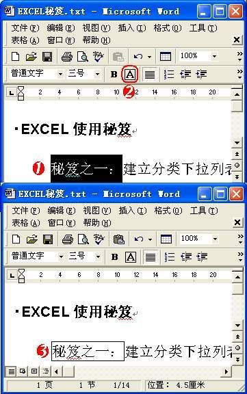 ③选中的字符被加上底纹。