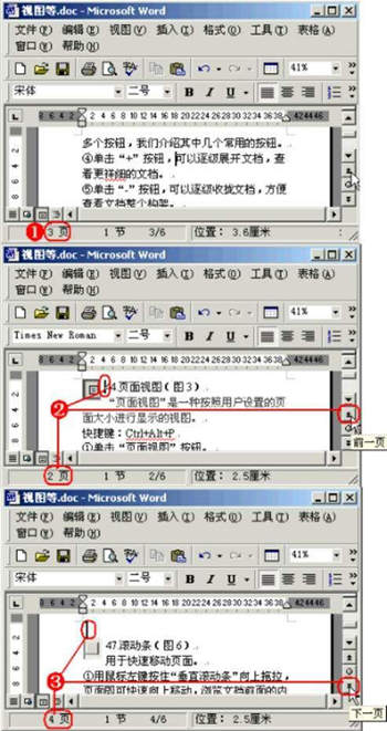 ①用鼠标左键按住“垂直滚动条”向上拖拉,页面即可快速向下移动,浏览文档前面的内容;如果向下拖拉,页面即可快速向上移动,浏览文档后面的内容。