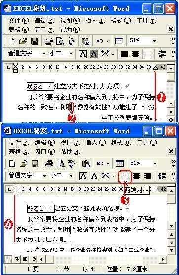 ③该段文本就被设置为“两端对齐”了。
