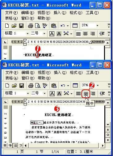 ③该段落被设置成居中格式。