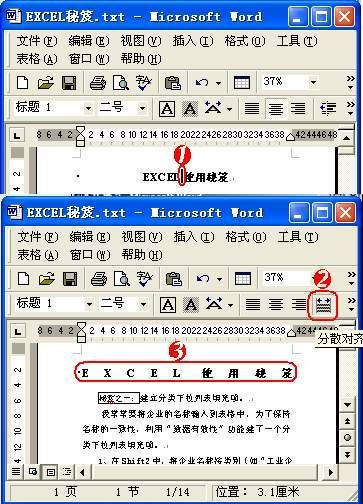 功能:将不足一行的文本分散在一行中,形成两端对齐的格式。