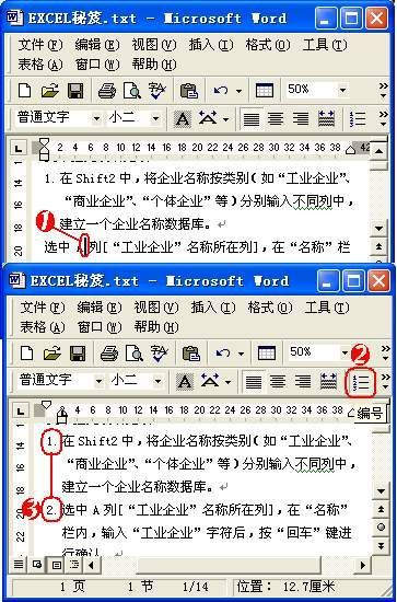 ③该文本行前面被自动依次序添加上编号。