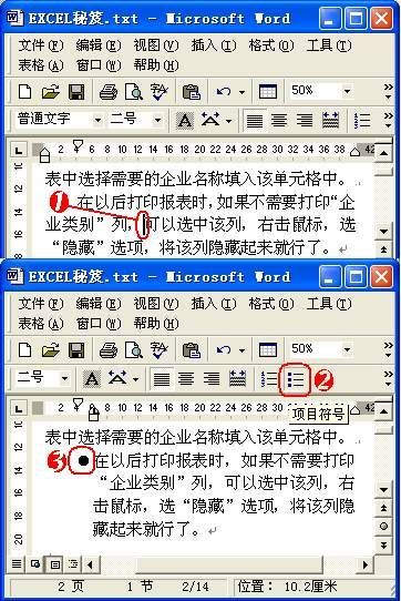 ③该文本行前面即被添加上一个特殊符号(默认为“●”)作为项目符号。