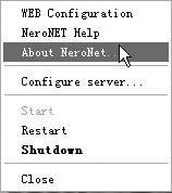 成功安装NeroNET后,NeroNET Server将自动运行,并在任务栏中显示图标。右击该图标,会显示图1所示的菜单。其中WEB Configuration是用来配置服务器的,主要的设置都在这里完成;Configure server是用来配置服务器的“root”和“config.xml”,建议不要修改其缺省值;Shutdown表示关闭NeroNET服务器,所有的列队任务将被取消。