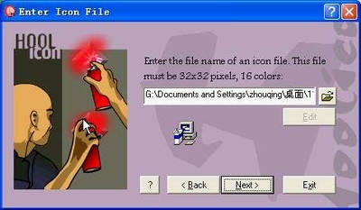 4.选择一个大小为32像素×32像素的16色的图标文件,以替换原来的图标。注意图标的格式一定要符合要求,否则无法替换。(图标文件在网上也容易找到,你也可以自己制作)(图4)。