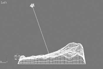 对于山的模型有很多制作的方法,既可以创建一个平面后使用Noise或Displace修改器来制作,也可以使用置换贴图。如果想要更真实的效果还可以使用Mountain或DreamScape等插件制作,总之方法很多也很简单,因为本文的重点是材质和灯光的编辑,大家可以根据自己的需要制作山的模型,这里就不多介绍了。创建好山的模型后在视图中创建一架摄影机,将透视图切换为摄影机视图后调整好角度,准备编辑材质。