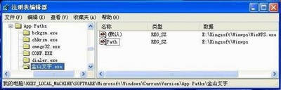 ⑴在App Paths下建立一子项,项的名称改为“金山文字.exe”(可以任意取),注意后面的.exe不能丢;