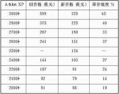 在这款新品推出的同时,AMD的多款Athlon XP处理器大幅降价,特别是Athlon XP 3000+从588美元一下子降为325美元,降幅达到了45%!下面是这次降价前后的Athlon XP处理器价格对照表: