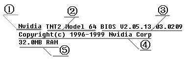 ②芯片型号:我们平时常说的像GeForce2/GeForce3或者RADEON、G450/G550等都是3D图形加速芯片,一般情况下我们可以从此看出显卡的芯片型号,该显卡的芯片是nVidia 64位 TNT2 Model64 图形处理芯片。