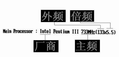 在“Main Processor”后面显示的CPU的信息中包括了CPU的主频、外频和倍频信息(图4)。从图中的显示的“Intel Pentium Ⅲ 733MHz(133×5.5)”可以得知你的CPU是Intel Pentium Ⅲ处理器,主频为733MHz,外频是133MHz,倍频为5.5。如果你的CPU是AMD的Duron处理器,主频为750MHz,外频是100MHz,倍频为7.5,在不超频的情况下(即在正常工作的状态)将显示为“AMD Duron(TM) 750MHz(100×7.5)”了。