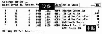 在综合信息的表格下面还有一部分画面我们并没有介绍,它就是PCI设备运行状态列表。在综合信息表的“PCI device listing……”后面,系统为我们详尽地列出了电脑中所有PCI设备工作状态表,这样我们就可以根据这些信息,很快地判断电脑是否存在硬件冲突。