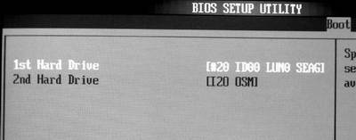 说明:初次看到这样画面的朋友,可能会对图中选项有些迷惑,“#20 ID00 Lun0 Seag”、“I2O OSM”是什么硬盘?原来BIOS程序能够自动识别安装的SCSI硬盘系统,并根据硬盘系统的参数对它进行标注,本例中的“#20 ID00 Lun0 Seag”代表连接在主板SCSI接口上的Seagate捷豹SCSI硬盘,而“I2O OSM”是Adapt RAID卡上BIOS程序的代称,也就是代表RAID硬盘系统。因此,图示的含义是先从SCSI硬盘启动,再从RAID硬盘启动。应当特别指出的是,Hard Disk Drives子项中的选项会因安装设备的不同而有所变化。例如在此服务器上加装一块IDE硬盘,设为Master模式,并连接到主板上的Primary IDE接口上后,子项就会相应地多出一个“IDE Primary Master”选项。