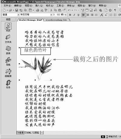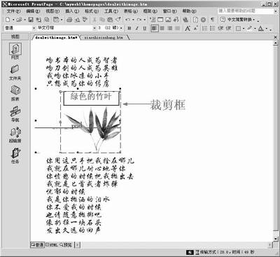 在网页中插入一个尺寸较大的图片后,不仅要占用比较大的空间,而且影响站点浏览者的下载速度。为了删除图片中不需要的区域,可以利用FP提供的图片剪裁功能。在图5中的图片左边部分是多余的,如何剪裁多余的部分呢?