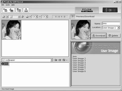 墙纸更换:从左下角的窗口选择需要的图片(图2),从预览窗口中可以看到图片,确认无误后就点击“Download”按钮让手机从电脑中把图片下载回来,一共可以下载8张图片。如果发现图片不适合,只要点击“Delete”,就能把图片删掉了。