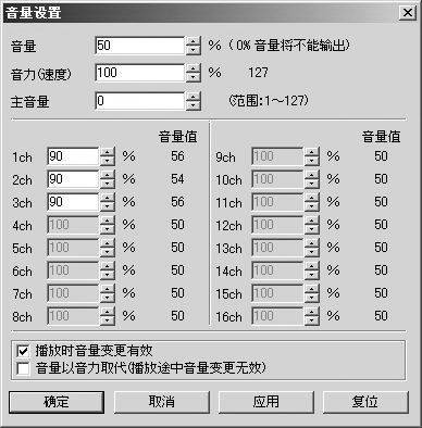 2.你可以先对MID文件进行试听,为了避免音量过大,造成手机喇叭出现爆音或失真,建议将音量调小,选择“设定→音量设置”,可以把音量设为50(图5),再对下面3组乐器的音量进行相应的调整,然后按“确定”;