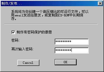 选择主菜单“文件→发布/制作相册”,会弹出一个加密对话框(图5),如果需要对相册进行密码认证保护,先点选“制作有密码保护的相册”复选框,然后输入密码,再单击“OK”按钮便完成了加密。接着又会弹出一个保存对话框,指定一下文件名和保存目录,单击“保存”按钮,你的相册便诞生了。