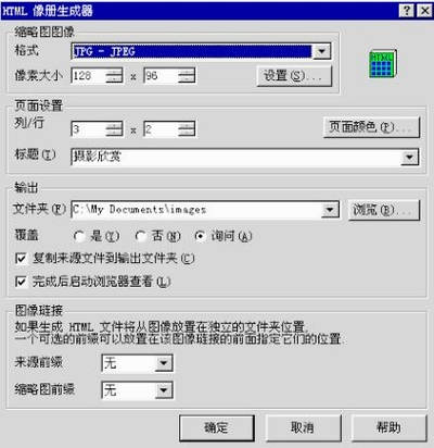 接下来的几个选项一般都可以采用默认值。最后单击“确定”就可以看到由ACDSee创建的带缩略图的网页了。