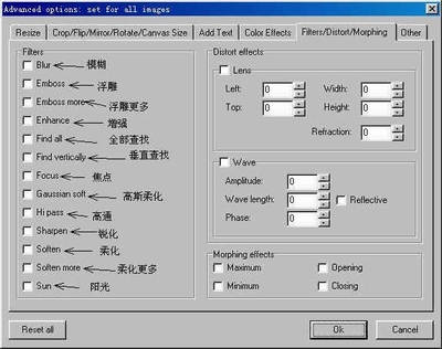 图像处理软件最令人惊叹的功能就是滤镜,只要小小的几个设置就可以轻松拥有绚丽的效果。点“Filters→Distort→Morphing”,选一个滤镜效果,不用设置即可轻松实现你要的效果。对应的效果中文翻译如图4。