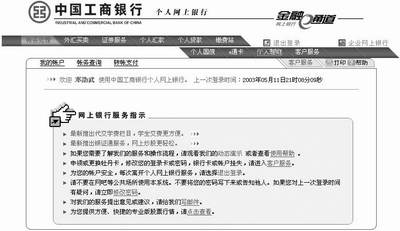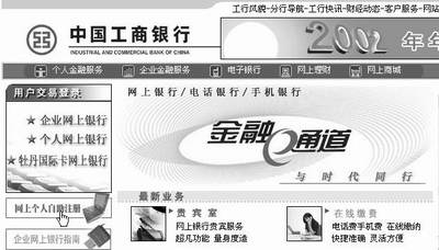 网上银行通常有企业网上银行和个人网上银行两类,前者只有专业的财务人员才需要接触,开户的手续要繁琐得多,对于广大SOHO用户而言个人网上银行更为实用一些,应付通常的账目查询、小额转账、网上支付是没有问题的。所以,下面我们就以工商银行的个人网上银行为例,介绍网络银行的具体操作。